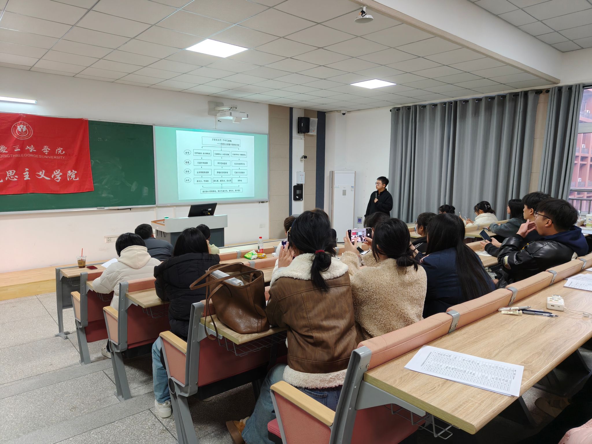 11月29日,马克思主义学院在博学楼3-311阶梯教室举办校友专题讲座。本次讲座特邀2022届毕业生朱浩、汪华两位校友返校分享,学院本硕学生积极参与。